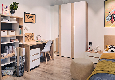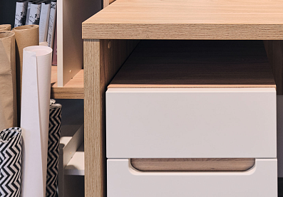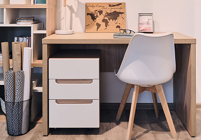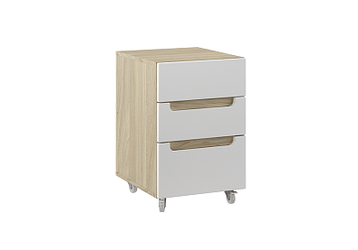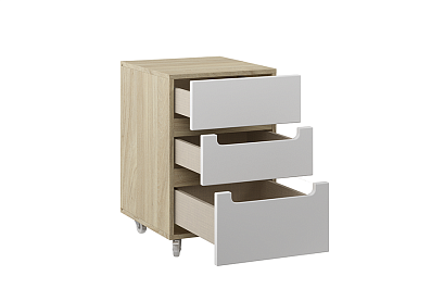 Выкатная тумба Анри с выдвижными ящиками Швейцарский вяз, Белый