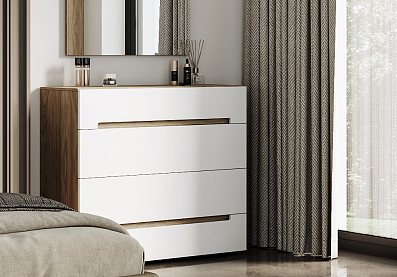 Комод Анри с выдвижными ящиками С доводчиками, Швейцарский вяз, Белый