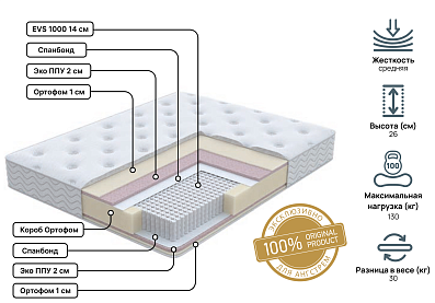 Матрас Golden soft Pro 140х190 Средняя с пружинным блоком
