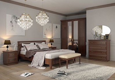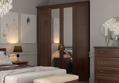 Шкаф Кантри с полками КА-011.00 (1 комплект), 2 выдвижными ящиками и штангой для одежды с зеркалом Валенсия
