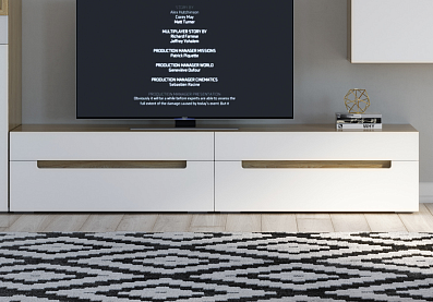 Тумба Анри под телевизор с выдвижными ящиками Швейцарский вяз, Белый