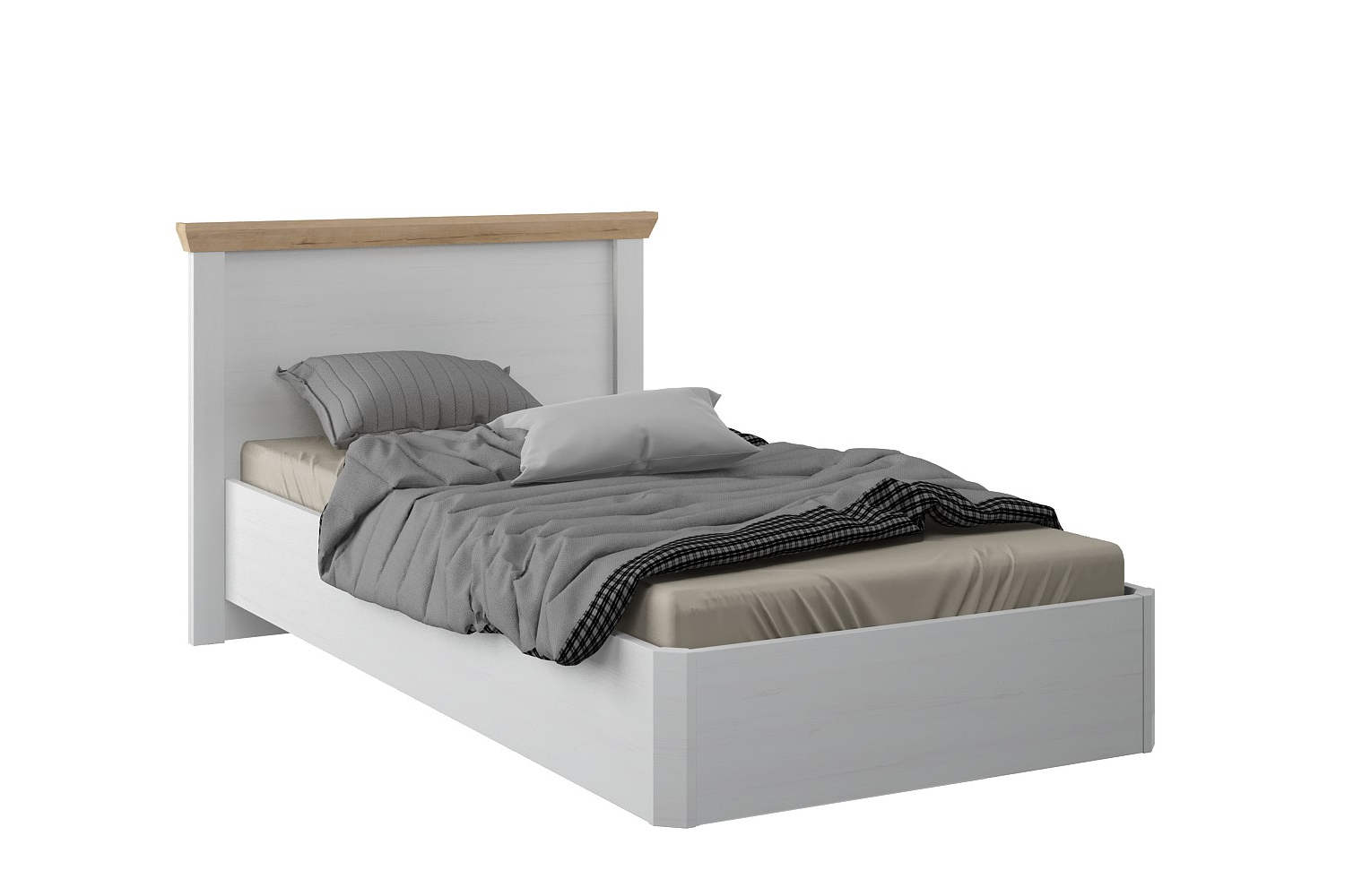 Лаконичная модель «Магнум» выполнена в оттенке «блан-шене». Теплый цвет древесины «дуб бунратти» разбавляет стерильность белоснежных поверхностей. Мебель выглядит гармонично за счет рамочной конструкции изголовья и закругленных углов спального ложа. Благодаря минималистичному дизайну, сдержанной цветовой палитре, отсутствию лишних деталей односпальная кровать идеально впишется в интерьер в стиле сканди, лофт, фьюжн и классика.