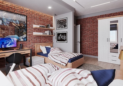 - Мебель выполнена в цвете «дуб бунратти», имитирующий натуральное дерево;