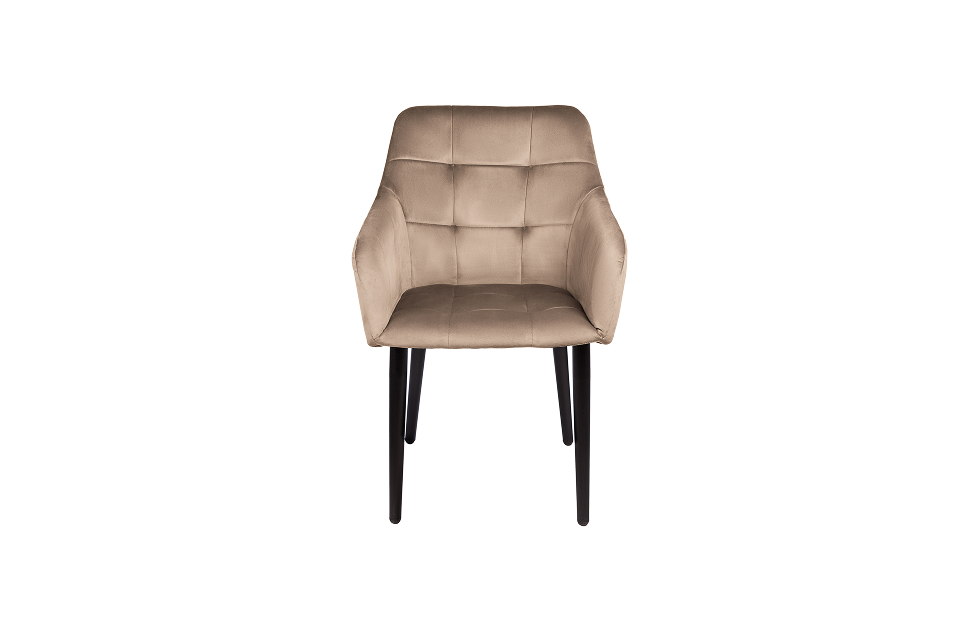 Стул-кресло Отэм прекрасно впишется в любой интерьер и комнату. Такой стул можно использовать как в качестве обеденного стула, так и в виде рабочего кресла к письменному столу. Обивка из велюра в актуальном бежевом оттенке прекрасно гармонирует с металлическими ножками черного цвета. Такие стулья украсят современные интерьеры, а также пространства в стиле эклектики.