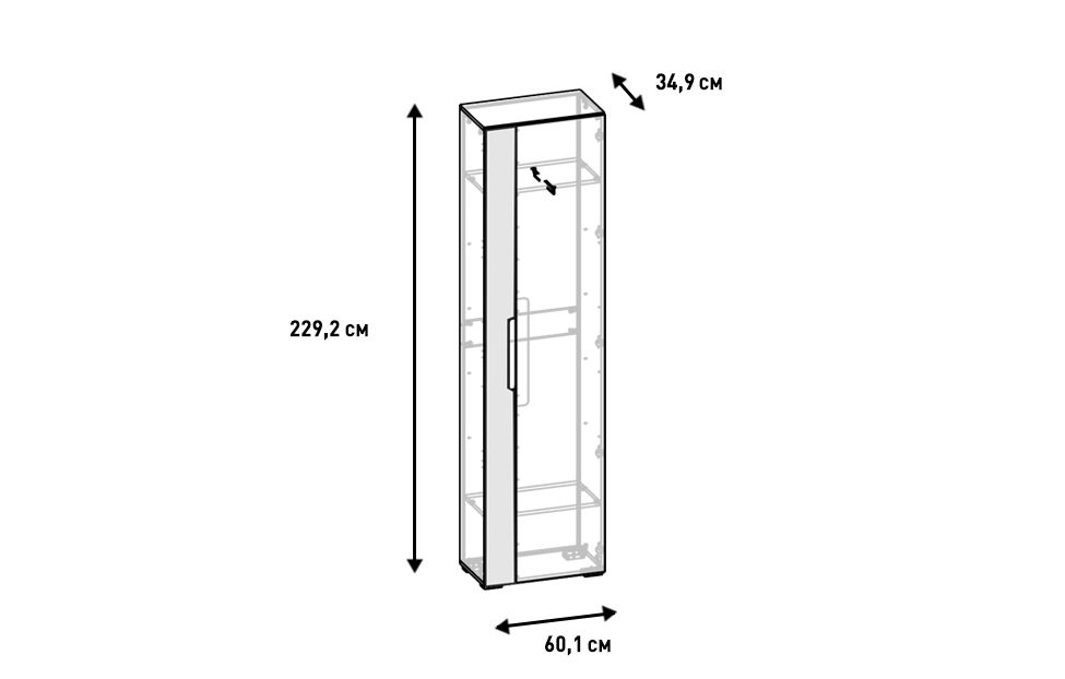 – описание: цвет швейцарский вяз, белый, размер 229.2x60.1x34.9 см, стиль современный, минимализм, назначение для одежды.