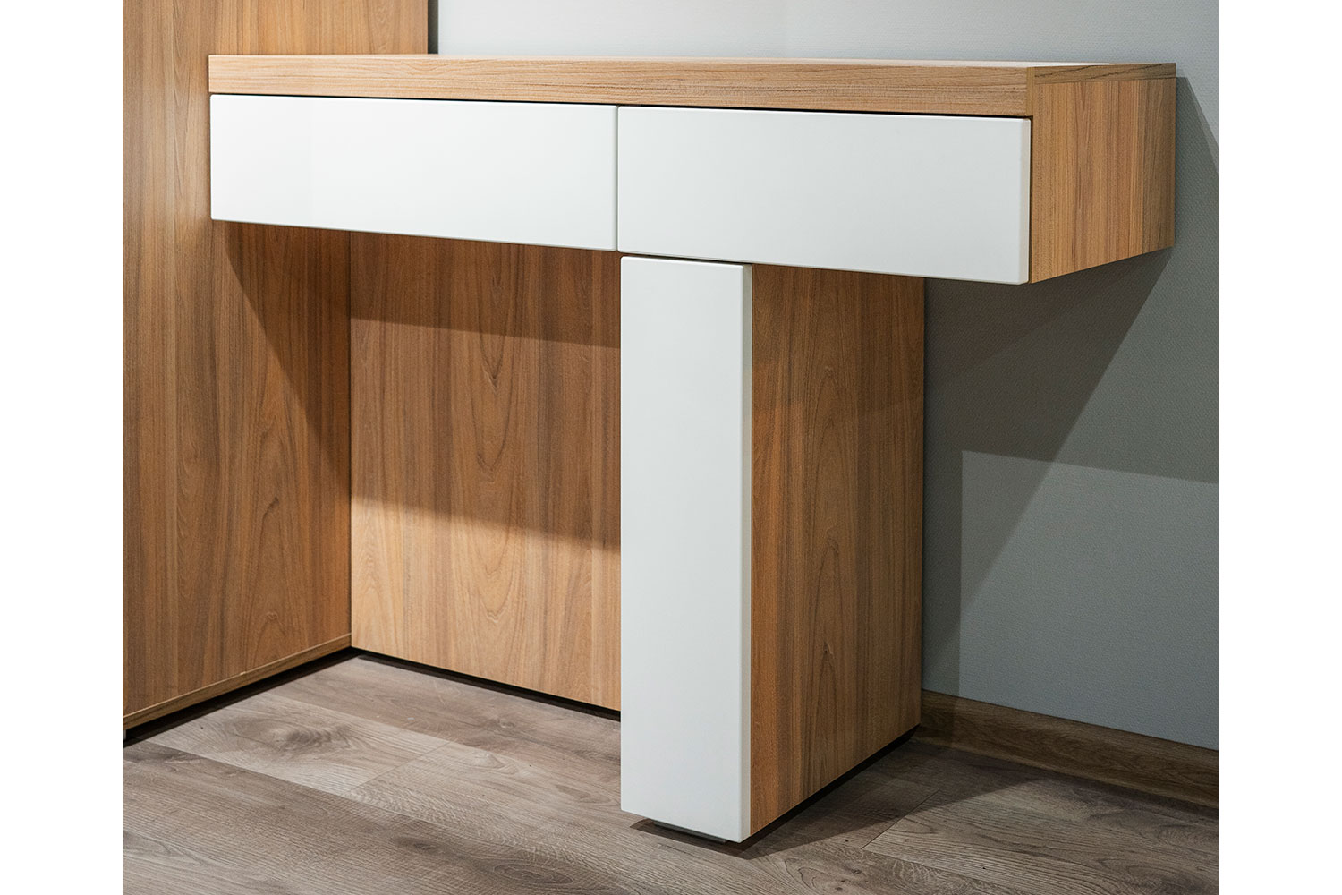 - Стол туалетный с двумя выдвижными ящиками и отделением с полками за распашной дверью;