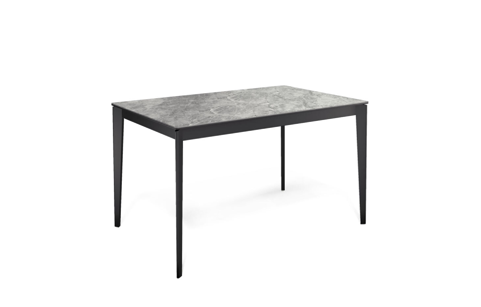Стол обеденный Дега раздвижной KR1400 – стильный и практичный стол с керамической столешницей, которая отличается высокой прочностью и долговечностью. Каркас выполнен из стального профиля и окрашен в черный цвет, который гармонично сочетается с глянцевой поверхностью керамики.
