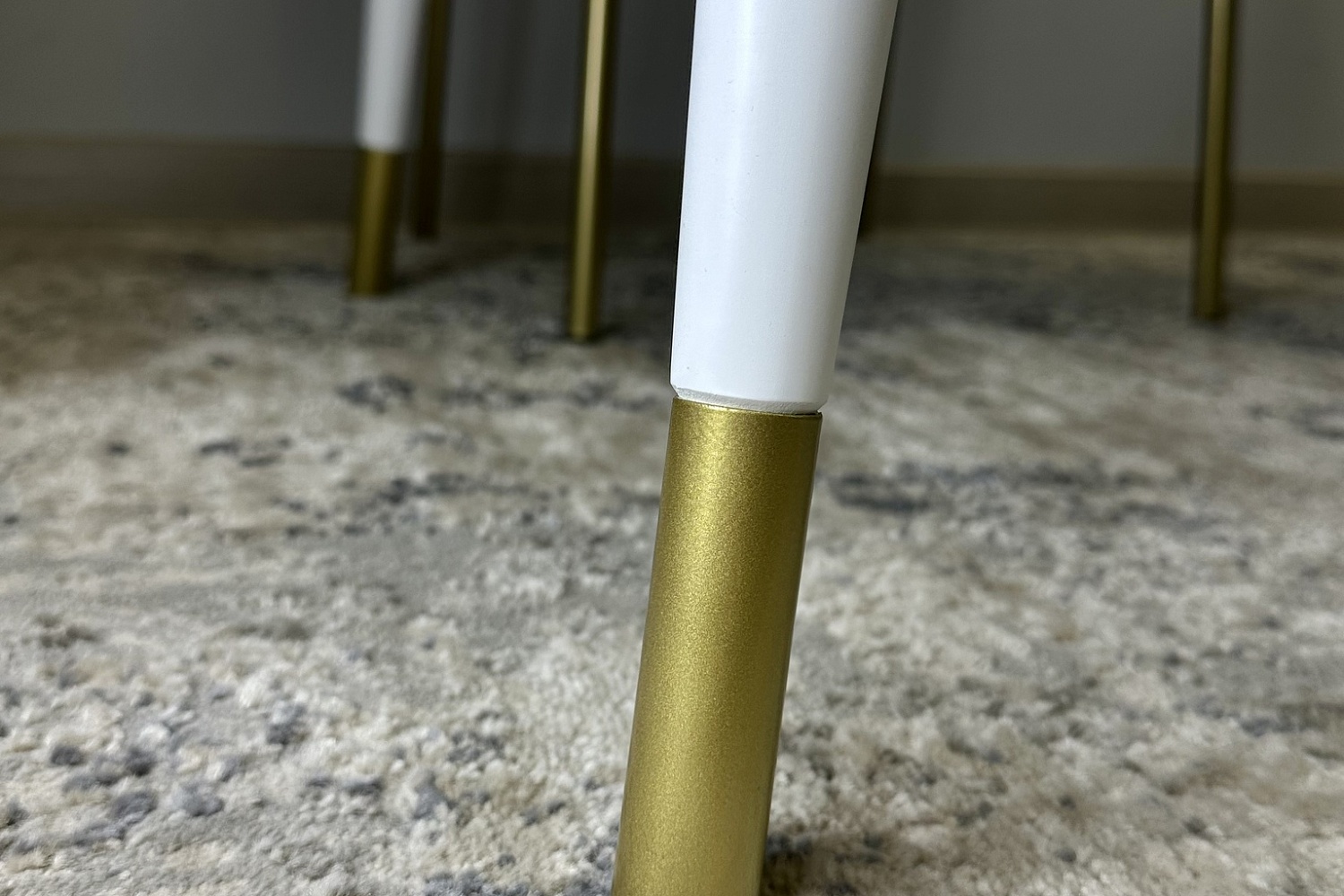Столешница из стекла надежно защищает стол от влаги и горячего. Для данного стола применяется дорогое, просветленное стекло optiwhite которое передает чистый, яркий цвет без зеленого бутылочного оттенка. Стекло надежно крепится к подложке из ЛДСП на герметик, распределенный по всей поверхности столешницы.