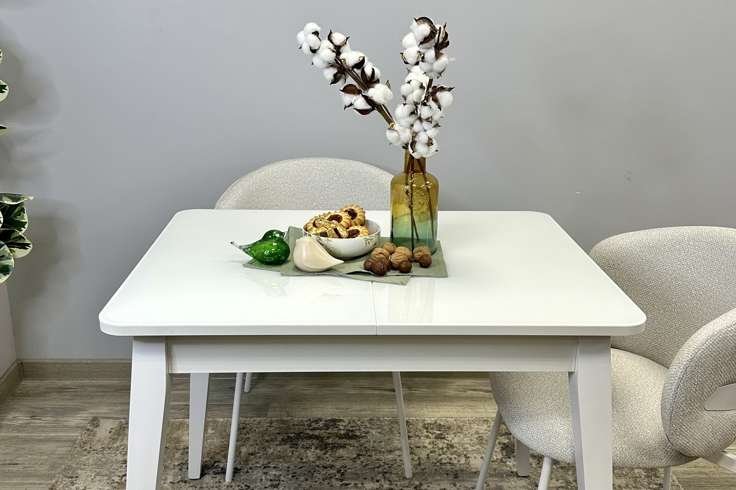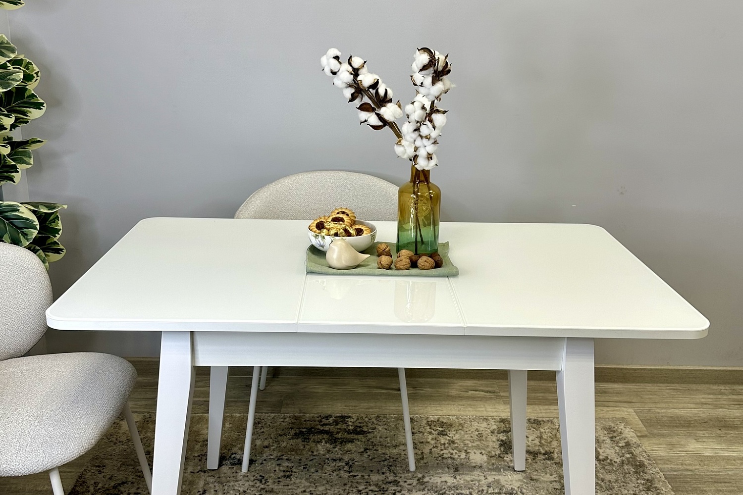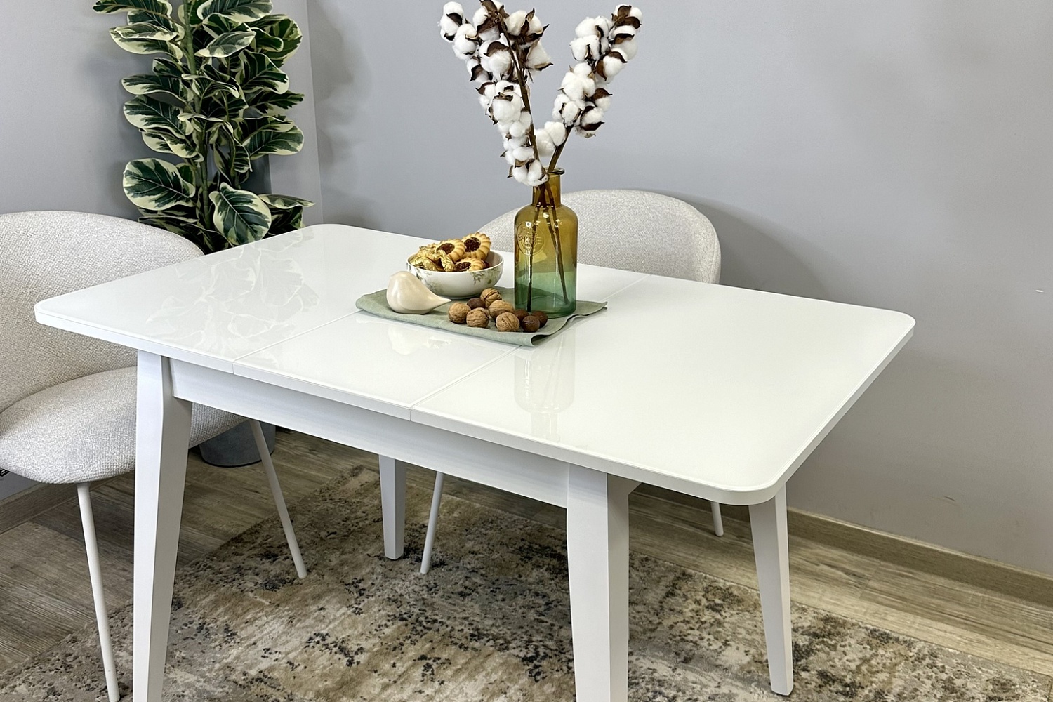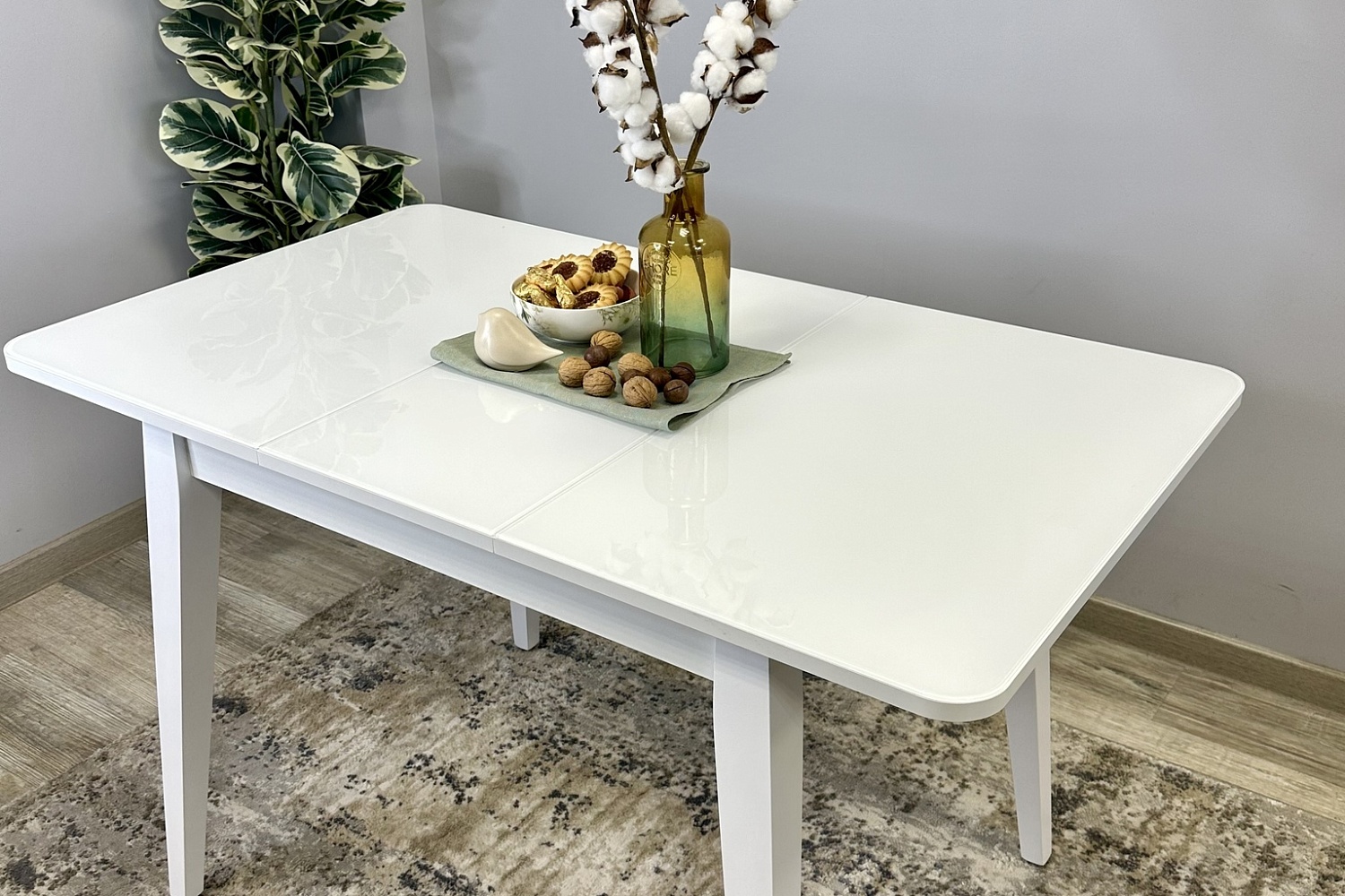 Размер стола компактный и в то же время достаточно вместительный для ежедневного использования 4 человек, по каждой стороне достаточно места чтобы поставить 4 широких стула вокруг стола. Механизм раздвижения со стеклянной вставкой позволяет комфортно посадить еще 2 гостей. Компактный и очень функциональный стол, идеален для использования как на небольшой кухне, так и в качестве уютной обеденной зоны в гостиной.