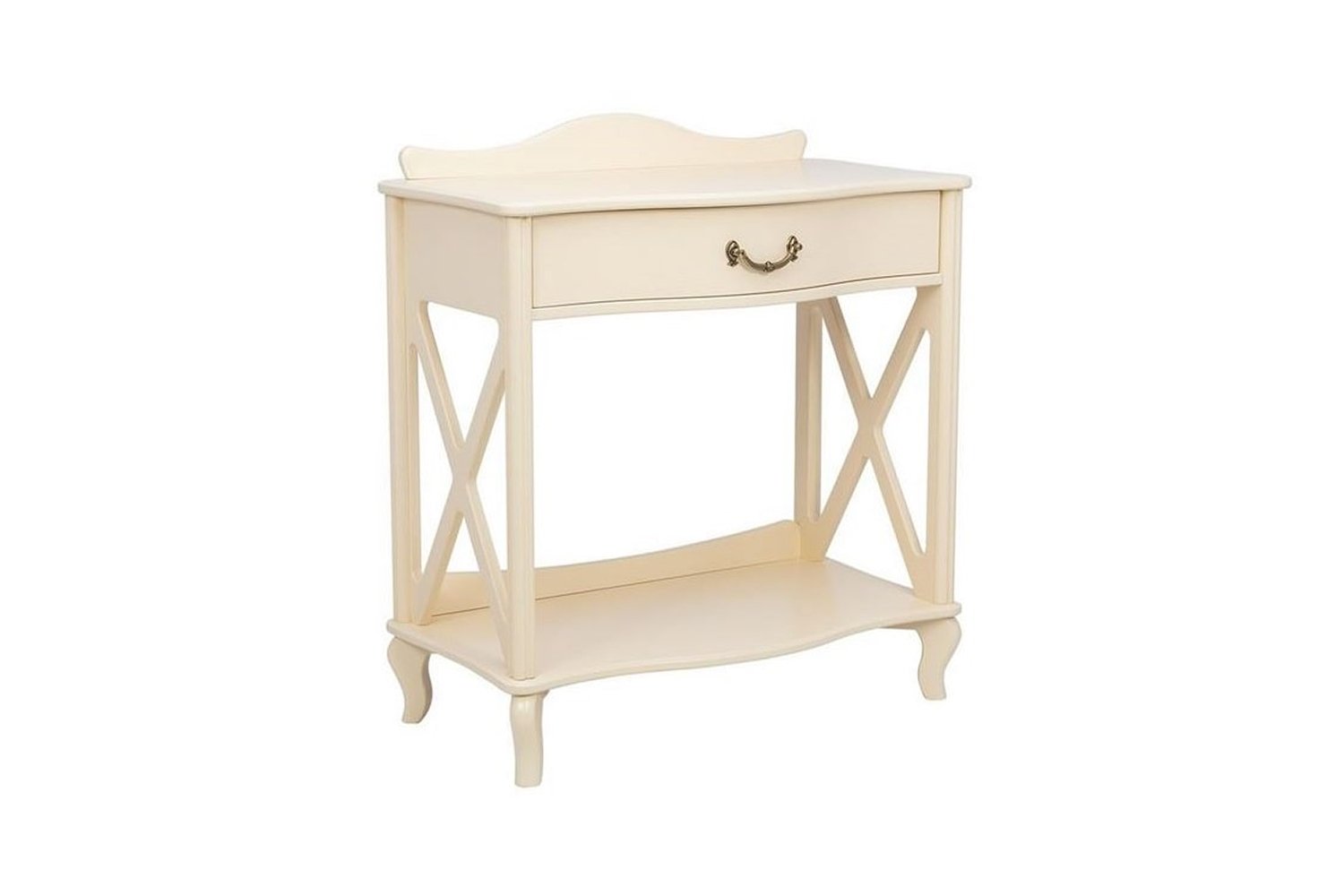 Узкий консольный столик «Джульетта» в цвете "Дуб шампань" предназначен для декоративных целей — на небольшую поверхность можно поместить вазу, сувенир, необычную статуэтку. Внешний вид изделия соответствует интерьерному стилю прованс. Бежевый оттенок, фигурная форма, изогнутые ножки, фурнитура в цвете «античная бронза» превосходно впишутся и в классическую обстановку. Основание модели выполнено из МДФ, боковины и столешница — из ЛМДФ, прочие детали изготовлены из шпона натурального ясеня. Изюминка консоли — боковые части в виде декоративных элементов фахверков. В компактном ящике с бесшумным механизмом выдвижения можно хранить любимые книги, косметику, украшения, очки, различные мелочи.
