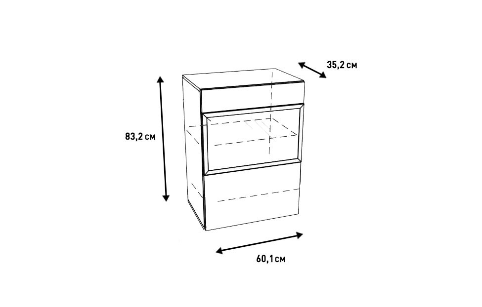 - Шкаф укомплектован одной полкой из ЛДСП и одной полкой из стекла;